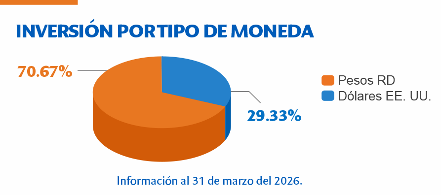 Las inversiones del Fondo de Pensiones bajo nuestra administración procuran la máxima rentabilidad posible junto al menor riesgo, diversificando la colocación de los recursos en los instrumentos y emisores que autoriza la ley 87-01 de Seguridad Social y sus normas complementarias, conforme la Comisión Clasificadora de Riesgos y Límites de Inversión del Sistema de Pensiones. Es por eso que la estructura de nuestra cartera de activos financieros es una muestra visible de una administración de fondos eficiente, que emplea últimamente las oportunidades actuales del mercado, pero con una visión objetiva del futuro.